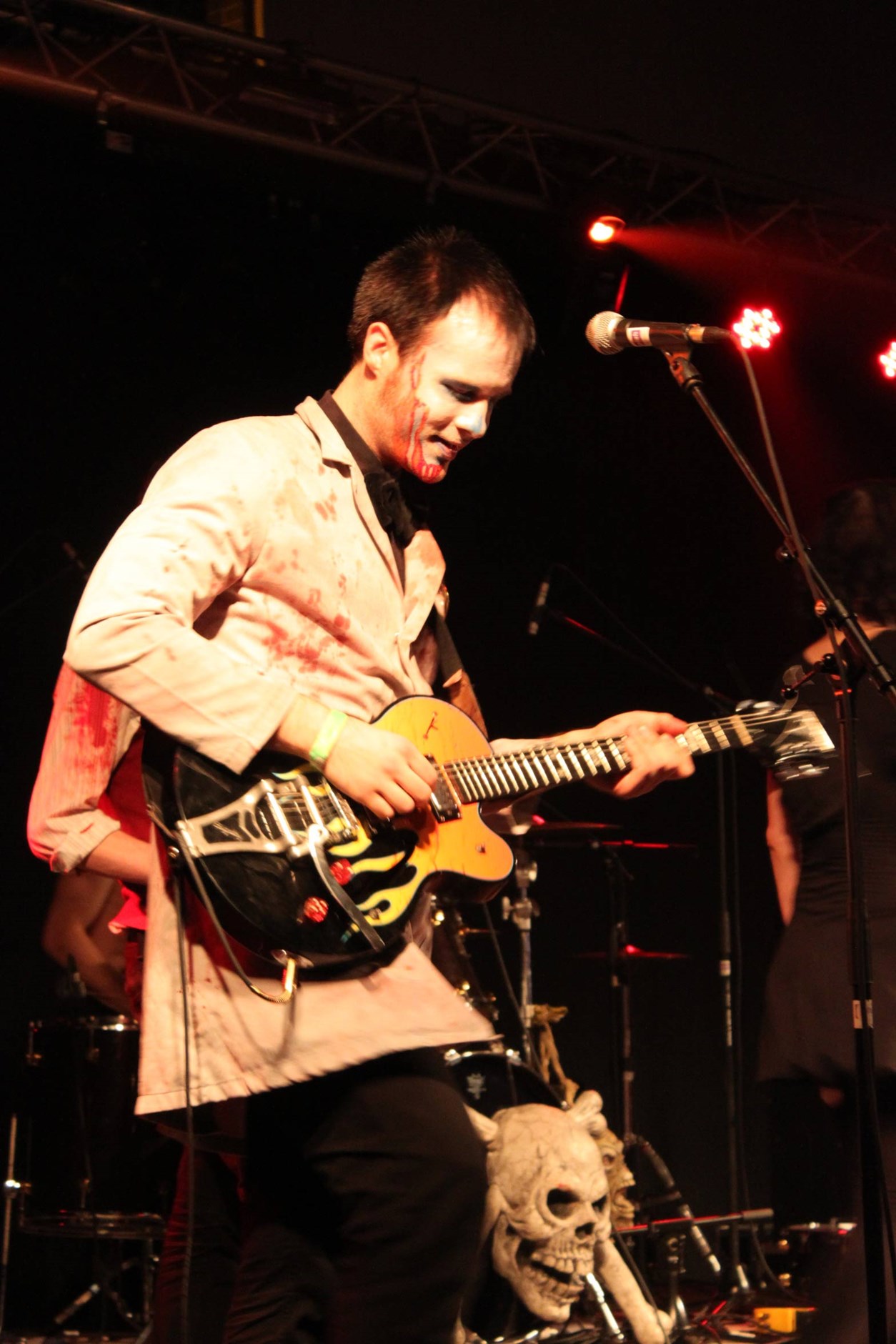 De catchy horrorpunk van Zombina & The Skeletones klinkt alweer op het tegenoverliggende podium, als ik nog rondhang bij That 1 Guy. Ze kunnen het fantastische optreden van That 1 Guy niet overtreffen, ondanks enthousiaste show compleet met nepbloed en zombieschmink, maar hebben wel genoeg fans in huis om ze over te halen tot het spelen van een toegift. Bombay Show Pig is de meest interessante Haagse band van dit moment. Het optreden op Langweiligkeit is de laatste datum van de releasetour van hun langverwachte debuut EP ‘Baby It’s a face’. Hun geluid refereert aan Yeah Yeah Yeahs en Death From Above 1979, maar is vooral heel eigen. Met een combinatie van soulvolle zang, rauw gitaar en -drumwerk en energieke optredens onderscheidt Bombay Show Pig zich van het gros der Nederlandse indiebands. De perfecte afsluiter van de 11de editie van Langweiligkeit.