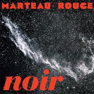 Marteau Rouge is een trio dat bestaat uit gitarist Jean-François Pauvros, drummer Makoto Sato en stemkunstenaar Jean-Marc Foussat, die ook een VCS 3 synthesizer bespeelt. Het is de eerste opname en tevens de eerste release van dit trio improvisatoren, waarvan we zelf vooral Pauvros in ons geheugen hebben zitten. Niet dat we zoveel werk van de man in huis hebben, maar we herinneren ons levendig zowel de plaat Le Grand Amour als het concert dat we naar aanleiding van die release zagen. Ted Milton (Blurt ), Arto Lindsay en drummer Terry Day omringden hem en kwamen tot een zeer overtuigend resultaat. De man werkte in zijn carrière met een resem al dan niet improvisatieartiesten, waaronder Jac Berrocal, Noël Akchoté, Evan Parker, Rhys Chatham, Elliot Sharp en nog heel wat meer. Foussat en Sato zijn minder bekend, al verdienden beiden hun sporen in het experimentele en improvwereldje. Marteau Rouge bestaat trouwens al verschillende jaren, maar bleef tot nu toe beperkt tot een liveband, waar bijvoorbeeld ook Evan Parker mee het podium opstapte. Noir is een typische improvplaat, al is het er eentje die meer de ingetogen, donkere kant laat horen. Het is een voorzichtig uitproberen en opbouwen, eerder dan te pogen de luisteraar te verwarren of overdonderen. Bij momenten is dit muziek voor bij een glas alcohol in een verduisterde kamer om bij te friemelen, net als het trio zelf aan het doen is. Zij met hun instrumenten, de luisteraar bij zijn partner. De plaat bouwt ook een beetje die richting op, want de tweede kant (deze release is alleen op vinyl verkrijgbaar) gaat stilaan naar een climax toe. Daarvoor dient de onderbreking natuurlijk, de plaat moet worden omgedraaid.