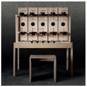 De Oostenrijkse geluidskunstenaar en componist Andreas Trobollowitsch heeft een semi-automatisch snaarinstrument gebouwd dat hij Ventorgano noemt. Dat kan je op het verkeerde been zetten. Alle orgels hebben wind nodig om geluid te produceren, toch? Dat ‘vent’ verwijst waarschijnlijk naar de manier waarop hij de snaren bespeelt, met gebundelde haren van een cellostrijkstok die hij laat rondzwieren door uit ventilatoren gesloopte assen. Het ‘organo’ gedeelte zou weleens afkomstig kunnen zijn uit het oude Grieks. In die taal betekende het gewoon instrument. Trobollowitsch kan het geluid op verschillende manieren manipuleren. Hij heeft zes snaren elk gespannen voor een eigen klankkast. Voor elke snaar zitten twee assen die hij met de gewenste snelheid kan laten ronddraaien. Bovendien kan hij de spanning van de snaren afzonderlijk regelen. Zo ontstaat een complex aan ritmes, grondtonen en boventonen, stijgende en dalende tonen, telkens veranderende samenklanken. Het lijkt een combinatie van de automatisch bespeelde snareninstallaties van geluidskunstenaar Paul Panhuysen en de automatische orkesten van Pierre Bastien. Met als gast een robotzaag die op grove wijze cello speelt, en al puffend en zuchtend vertraagt terwijl een orgeltje er onschuldig fluitend bovenuit stijgt. Het geluid kan verbluffend gelijkmatig zijn, maar vaak hoor je het ritmisch tikken van de bundels haren tegen de snaren. Botsende golven van tonen die dicht bij elkaar liggen, introduceren daarnaast rillende en trillende effecten. Een elektro-akoestische synthesizer is dan ook een goede omschrijving van dit instrument, dat heel soms met bijna-menselijke stem lijkt te zingen. Mooi, maar ook een beetje griezelig. Alsof het spookt, daar in die klankkasten.